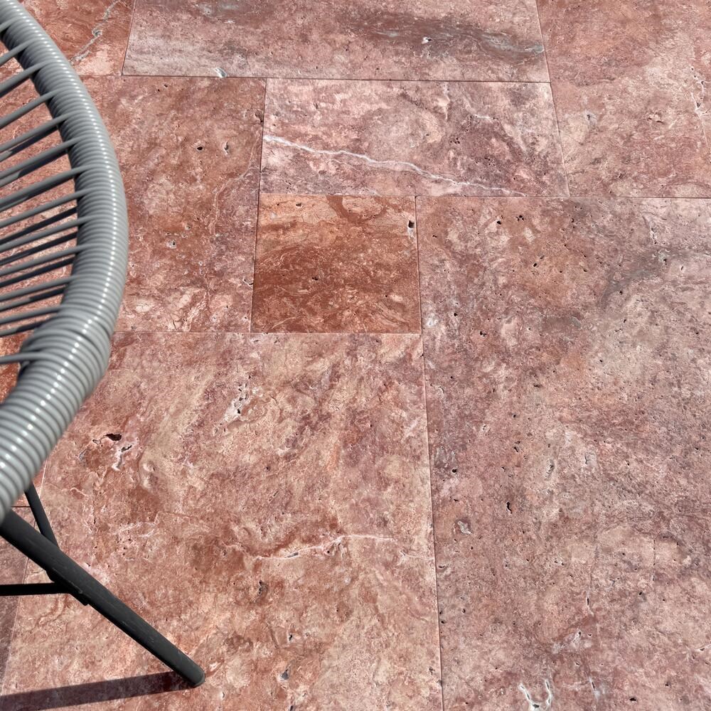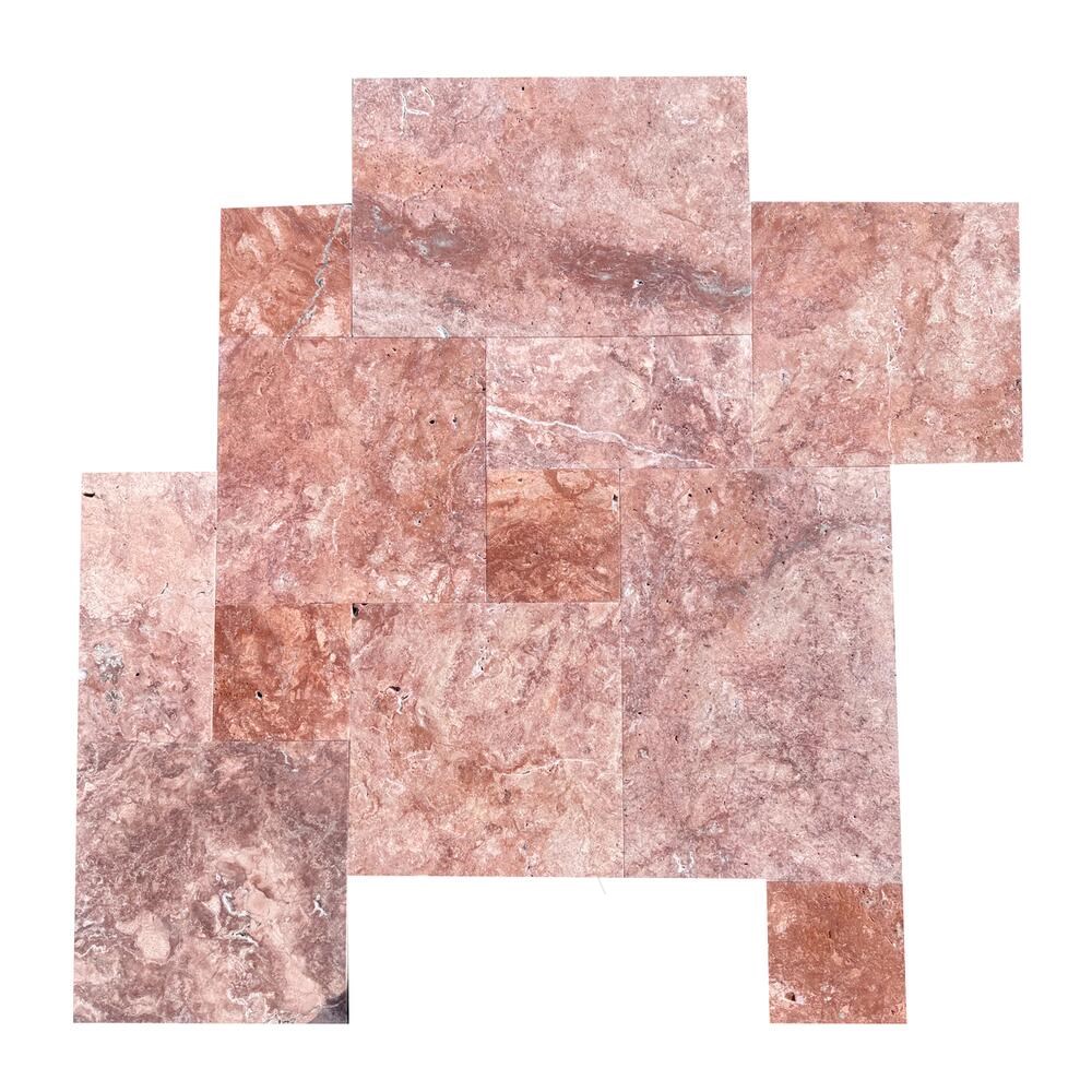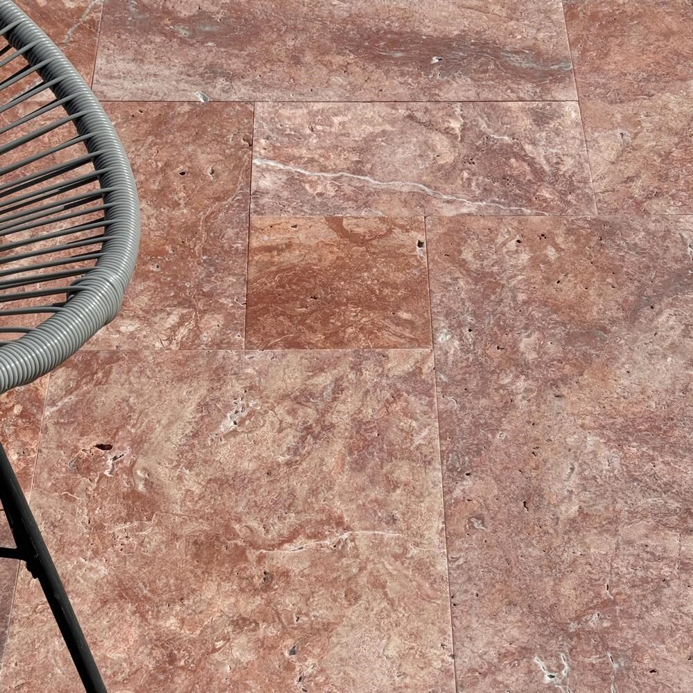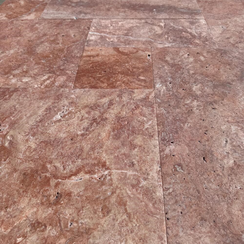 Les carreaux de travertin rouge à motif français peuvent être utilisés comme matériau de construction pour des projets de décoration intérieure et extérieure, dans des zones telles que les couloirs, les salons, les terrasses, les aires de repos entre les escaliers, les entrées, les parcs et les jardins. La finition brossée est antidérapante.