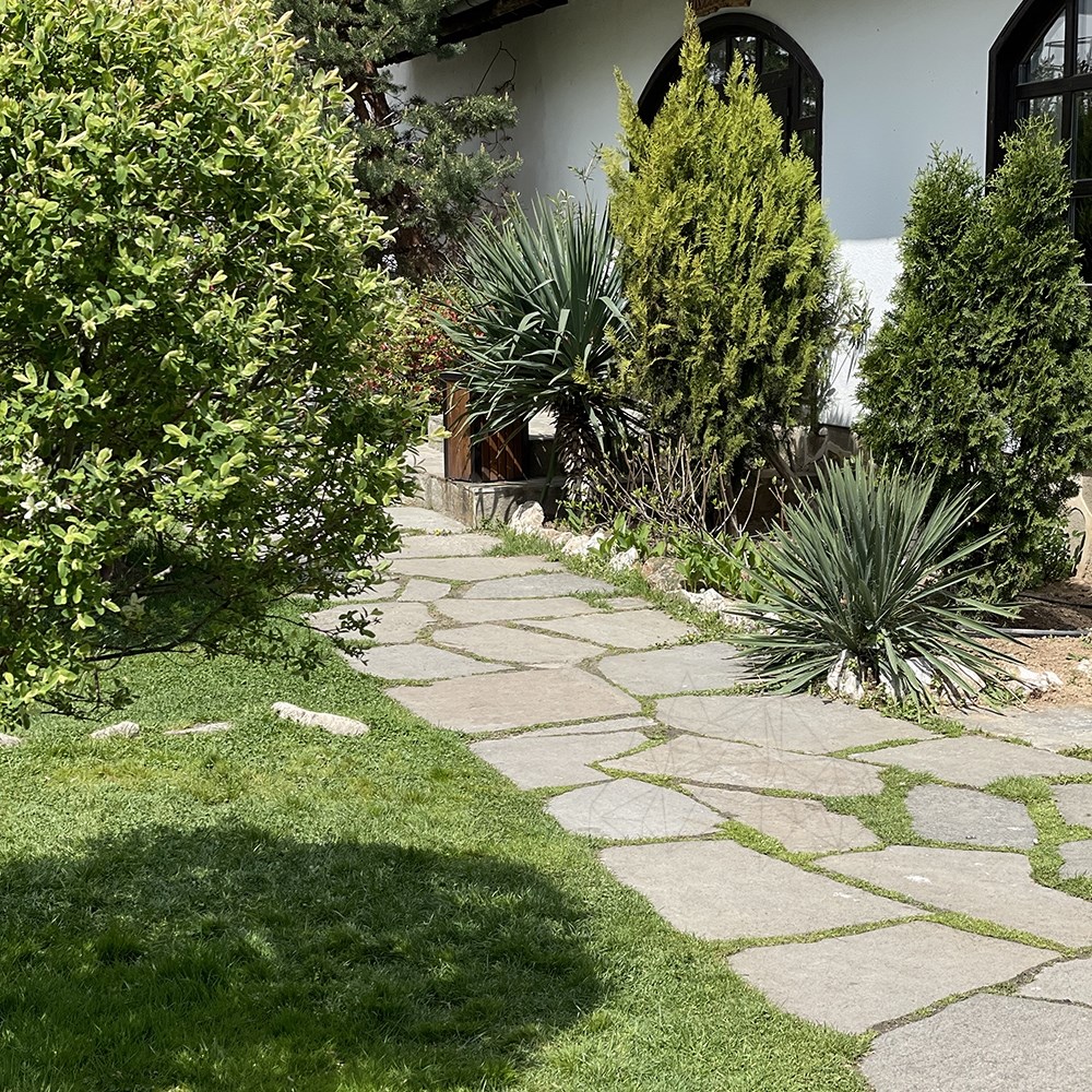La pierre naturelle polygonale Ardoise Homa - Dalles, contient dans un mètre carré environ 3-5 pièces, ayant de petites variations de couleurs, ce qui aide créer un aspect unitaire, naturel et élégant.