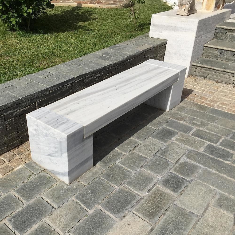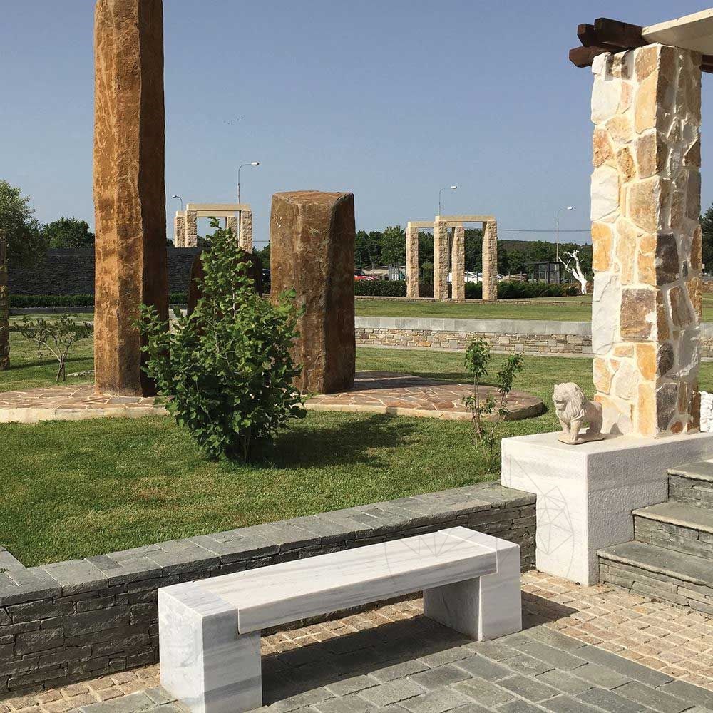 Pour garder le plus de cet aspect tout à fait spécial du banc réalisé en marbre de Kavala, nous utilisons l'utilisation des imperméabilisants et des solutions de maintenance des pierres naturelles