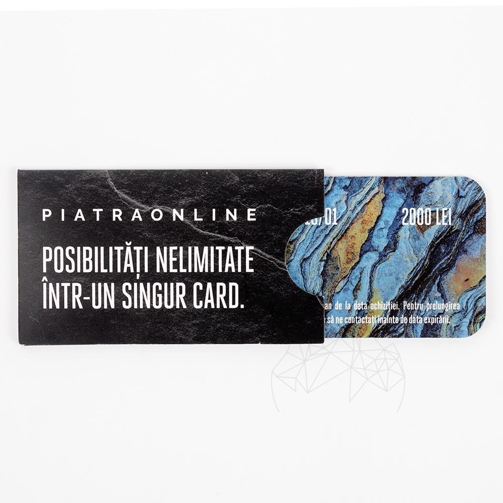 “Un cadeau pratique, au goût de tout le monde. Offrez des possibilités illimitées avec la nouvelle carte-cadeau PIATRAONLINE d’une valeur de 2000 lei ! Surprenez vos proches, choisissez le montant que vous voulez, commandez-le en ligne et offrez-le. Un cadeau de crémaillère, dans une nouvelle étape de la vie ou le simple désir d’offrir. Plans de travail pour la cuisine, des lavabos ou des petites baignoires, éditions limitées d’ustensiles de cuisine ou de barbecues, tout en pierre naturelle! La carte-cadeau est valide 1 an à compter de la date d’achat!”