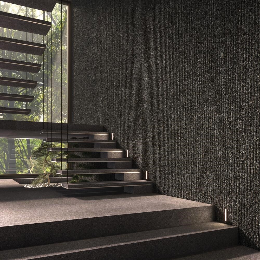 La collection RAW met en valeur la beauté naturelle de la pierre, chaque dalle soulignant sa texture et ses marques d'origine. Les arêtes brutes et les surfaces irrégulières de la dalle Black Crystal Lineal Extreme Dark Design 3 cm certifient la puissance brute de la nature et ajoutent une touche distinctive d'authenticité à n'importe quel espace.