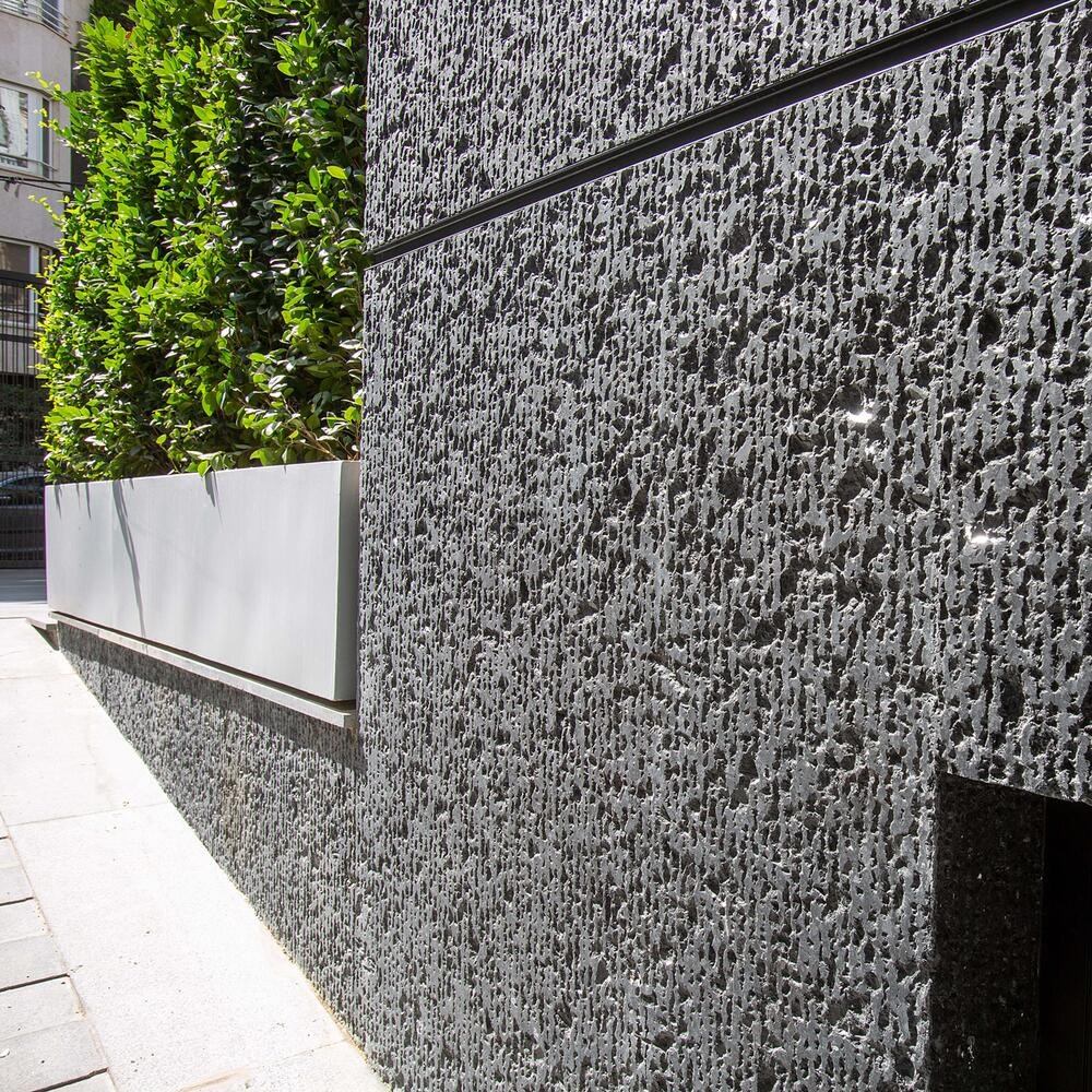 La collection RAW met en valeur la beauté naturelle de la pierre, chaque dalle soulignant sa texture et ses marques d'origine. Les arêtes brutes et les surfaces irrégulières de la dalle Black Diamond Lineal Extreme Dark Design Slab 2 cm certifient la puissance brute de la nature et ajoutent une touche distinctive d'authenticité à tout espace.