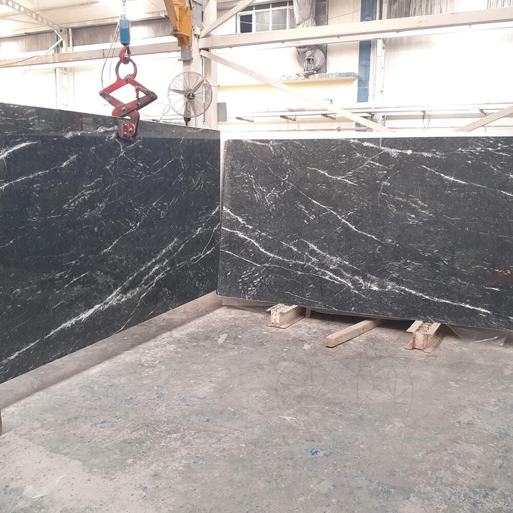 Parmi celles-ci, suivez l'enchantement du marbre Black Storm, un ouragan noir lustré, traversé par des éclairs, une collision furieuse adoucie par l'espoir avec lequel les veines blanches tentent d'échapper à l'étreinte.