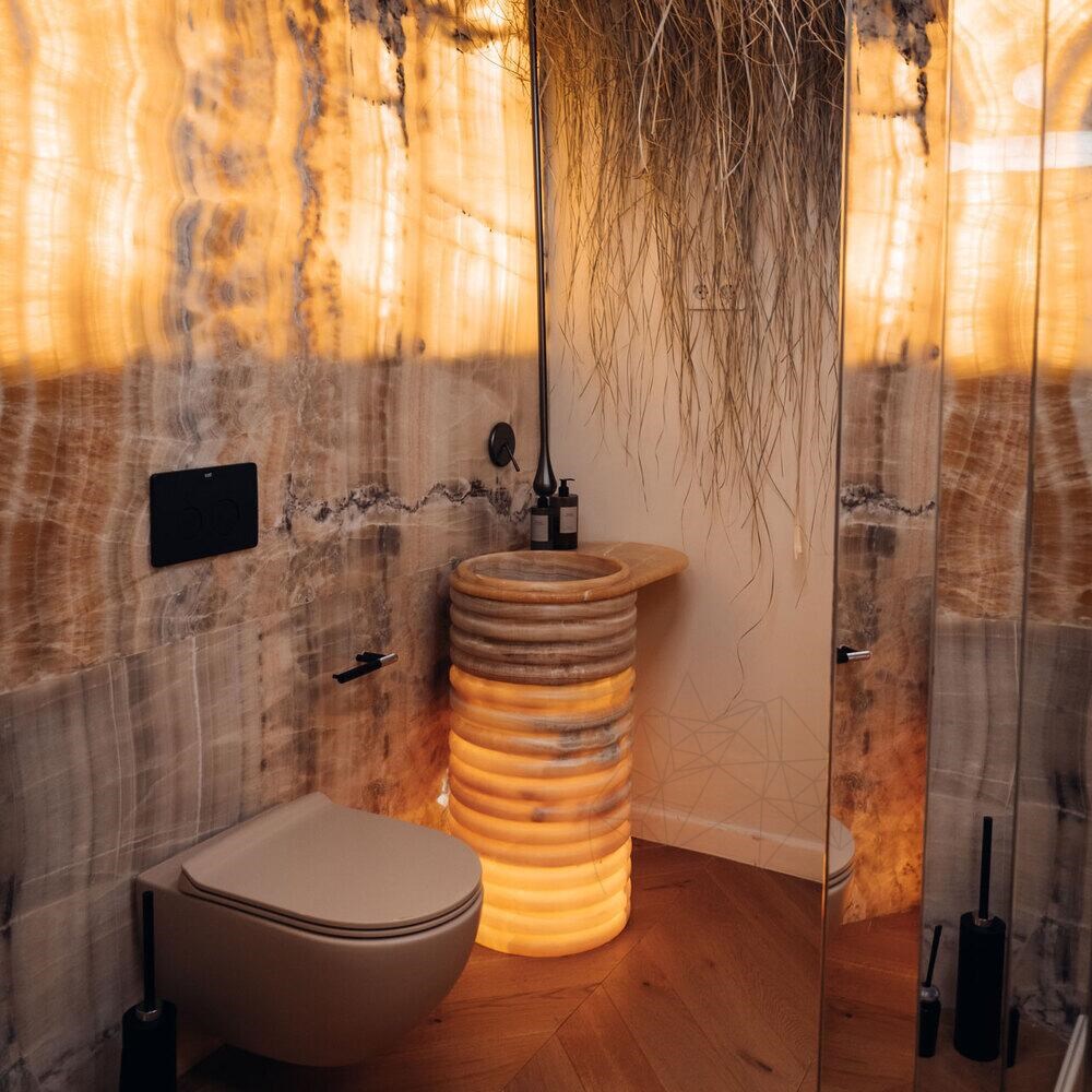 Valorisé depuis des milliers d'années, utilisé depuis l'Égypte antique et Rome pour la fabrication d'objets décoratifs et de bijoux, l'onyx combine la beauté traditionnelle avec des applications modernes. Les techniques avancées de traitement permettent la réalisation de travaux personnalisés et complexes en détail, tout en maintenant le lien avec les traditions de traitement de la pierre. L'onyx Tiger, avec ses couleurs vibrantes et sa texture translucide, est particulièrement apprécié pour sa beauté naturelle et l'effet luxueux qu'il apporte à tout espace, le rendant un matériau de choix pour les designers et les architectes à la recherche d'un produit de design intérieur exclusif.