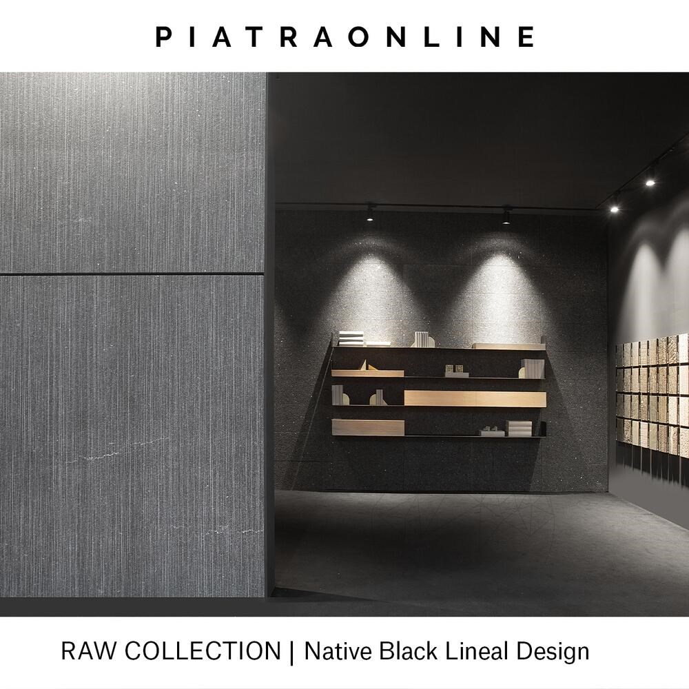 La collection RAW met en valeur la beauté naturelle de la pierre, chaque dalle soulignant sa texture et ses marquages d'origine. Les bords bruts et la dalle Native Black Lineal Extreme Dark Design 3 cm certifient la puissance brute de la nature et ajoutent une touche d'authenticité distinctive à n'importe quel espace.