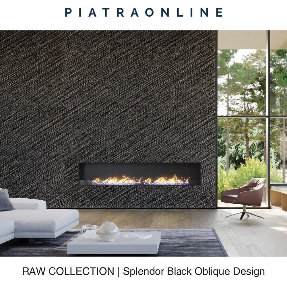 La collection RAW met en valeur la beauté naturelle de la pierre, chaque dalle soulignant sa texture et ses marquages d'origine. Les bords bruts et les surfaces irrégulières de la dalle Splendor Black Oblique Design 2 cm certifient la puissance brute de la nature et ajoutent une touche distinctive d'authenticité à n'importe quel espace.