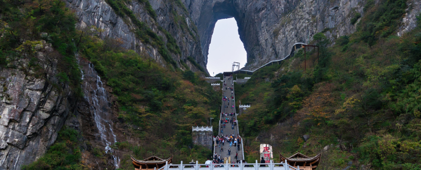999 marches en pierre naturelle menant à Heaven's Gate ne sont pas un nombre aléatoire. Dans la tradition taoïste, c'est le nombre suprême, symbole de l'Empereur ou du Fils du Ciel, créant ainsi encore plus de mystère. En dehors des 999 marches en pierre et si vous n'êtes pas préparé à une montée aussi longue, vous pouvez sauter dans un bus qui passe sur 99 sinueux. On a l'impression d'être à la frontière entre le royaume divin et le monde humain, la porte du paradis des montagnes Tianmen est un endroit que vous devez visiter et apprécier dans cette vie.