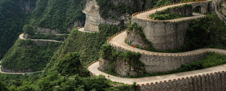 Heaven's Gate des montagnes Tianmen est l'une des destinations touristiques les plus populaires en Chine. Outre ses 999 escaliers de pierre qui pourraient vous effrayer, les 99 serpentins s'étendent sur une longueur de 11 km et sont censés prendre vie en prenant la forme d'un dragon blanc. Le chemin le plus rempli d'adrénaline est probablement The Coiling Dragon Cliff , fait de verre et s'étendant le long de la montagne sur 100 m de long et environ 1,6 m de large.