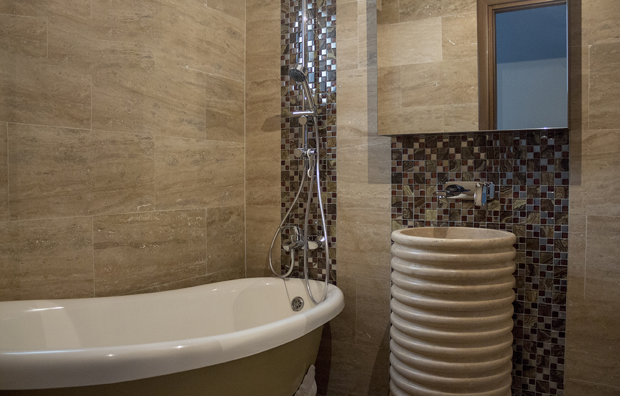 Habituellement, dans un petit appartement, lors de la décoration d'une salle de bain, vous devez tenir compte de la fonctionnalité et des besoins de base qui doivent être satisfaits par votre espace disponible. Néanmoins, avec quelques idées créatives, vous pouvez obtenir à la fois fonctionnalité et design. Pour une telle salle de bain, nous recommandons des nuances ouvertes – blanc, gris clair, beige et crème – pour créer la sensation d'espace, mais aussi pour un espace plus lumineux. Le portefeuille PIATRAONLINE dispose d'une large gamme de travertin et de marbre pour votre projet de décoration de salle de bain. Nous recommandons des carreaux rectangulaires pour le sol, pour vous donner une sensation d'espace supplémentaire. Les carreaux de mosaïque sont une autre option - ils ont la capacité de refléter la lumière et en plus, ils agrandissent visuellement la pièce.