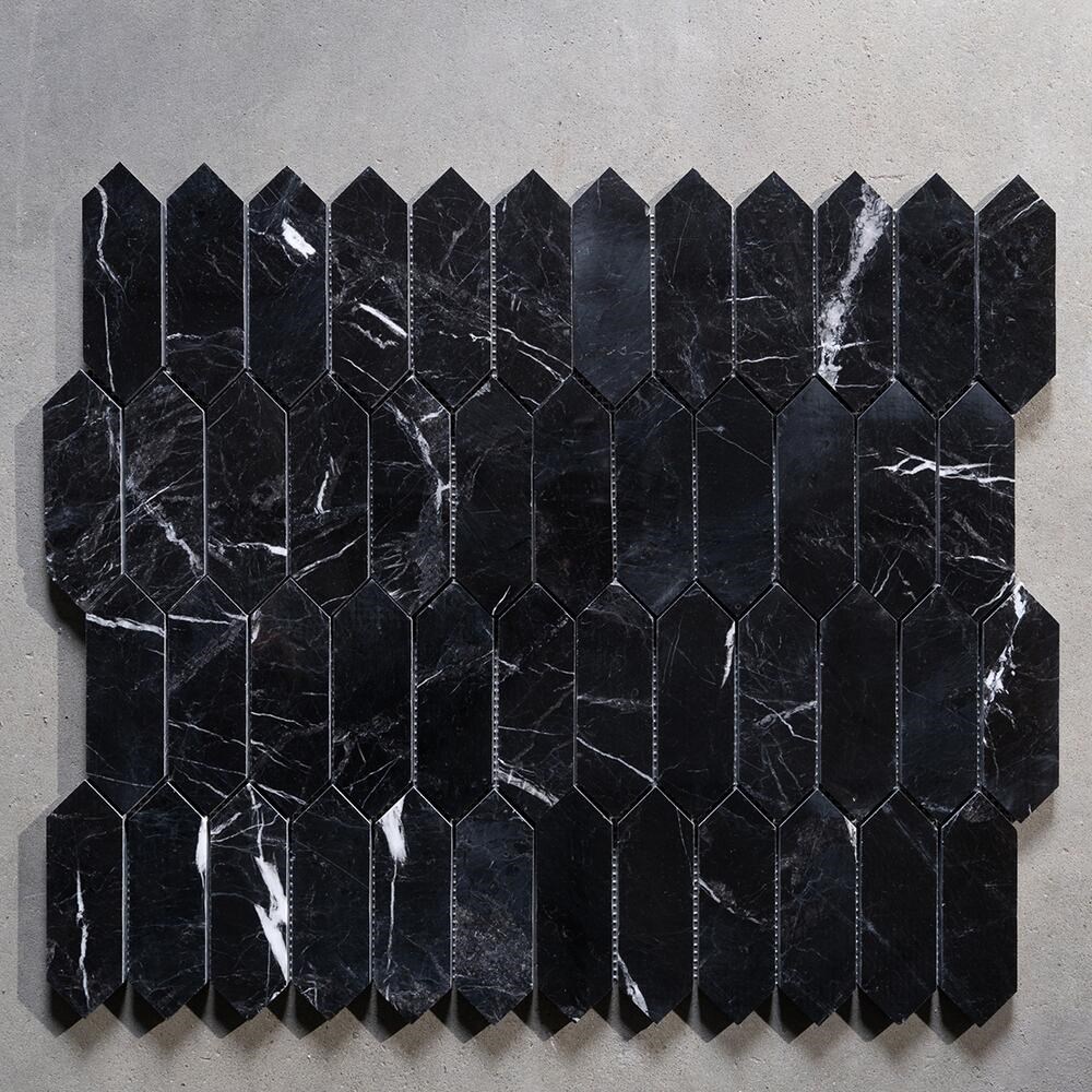 La mosaique en marbre noir poli, mesurant 30.5 x 28 cm, est un choix raffine et elegant pour tout espace. Ce materiau noble allie l'eclat naturel du marbre a une finition polie impeccable, creant ainsi une atmosphere luxueuse et sophistiquee.
