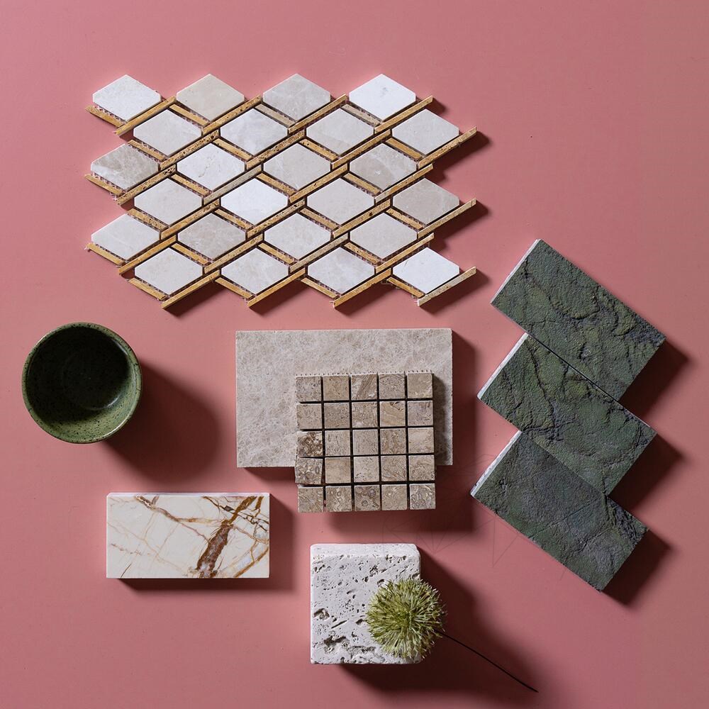 La mosaique en marbre beige et travertin yellow maze poli est un choix polyvalent et intemporel, capable de transformer n'importe quel espace en un sanctuaire elegant.