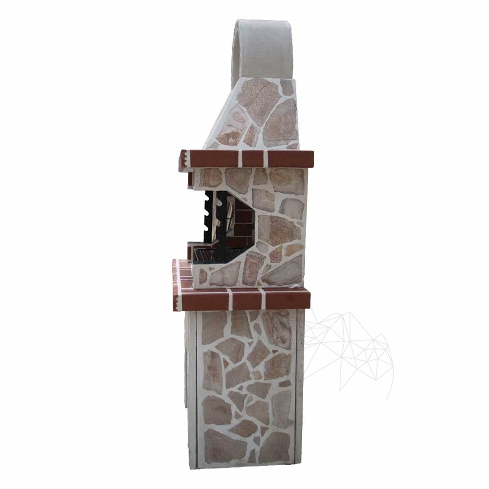 Le barbecue est équipé d’un dôme en brique ignifuge collé avec de l’adhésif thermostable et d’une chambre construite en panneaux de béton armé et en fausse brique; il est recouvert à l’extérieur de pierre naturelle. Il pèse 650 kg et est disponible en petites tailles – 210/100/60 cm. Les barbecues sont emballés et livrés sur des palettes en bois et contiennent également un schéma d’installation de type LEGO, de sorte que l’ensemble du processus d’assemblage prend entre 2 et 8 heures.