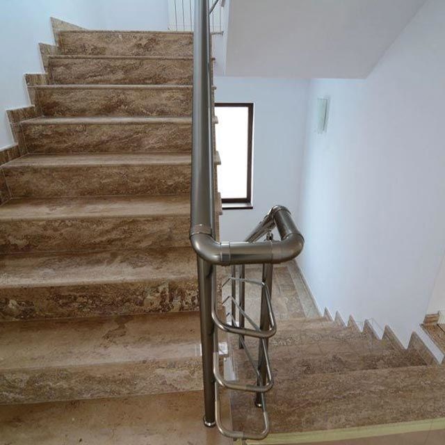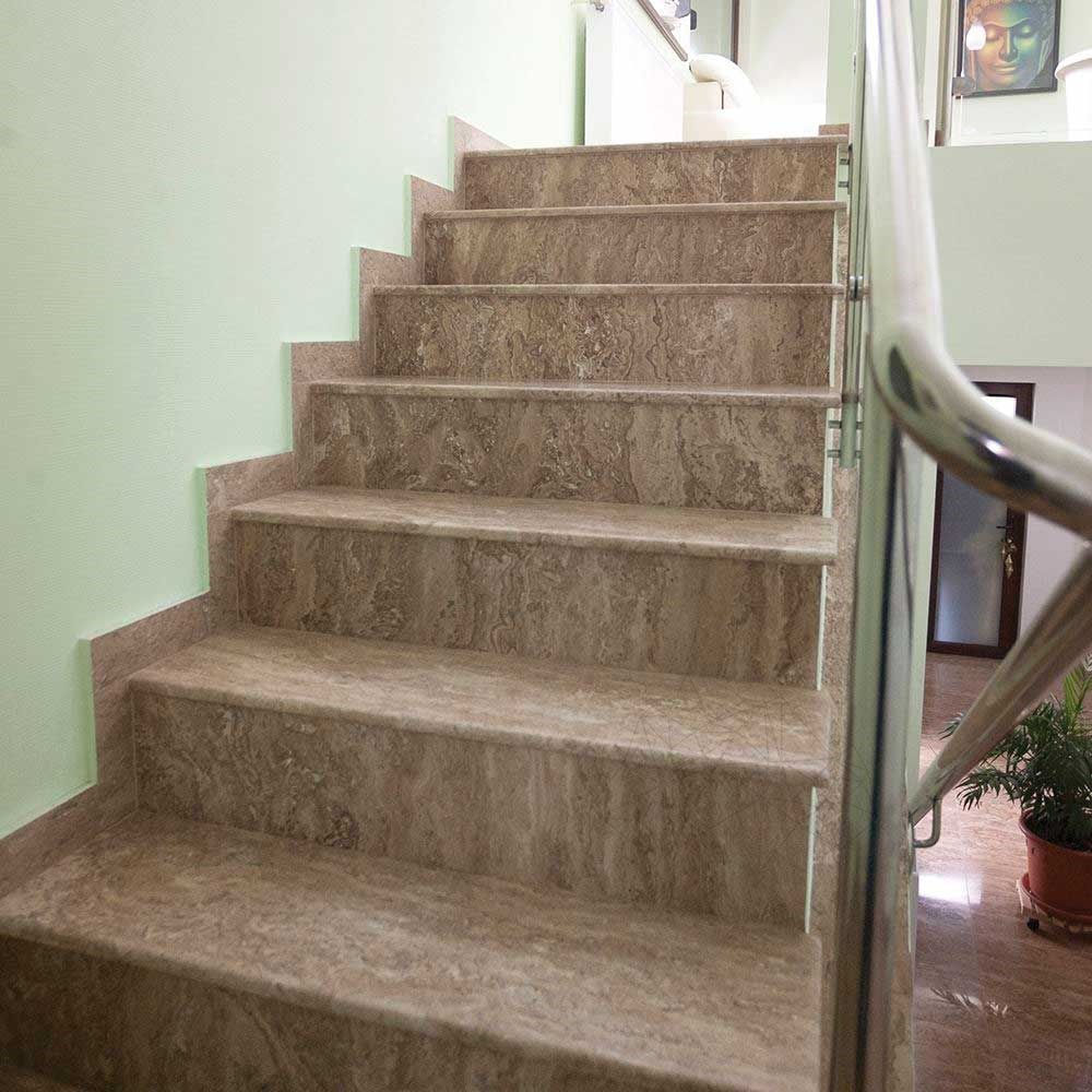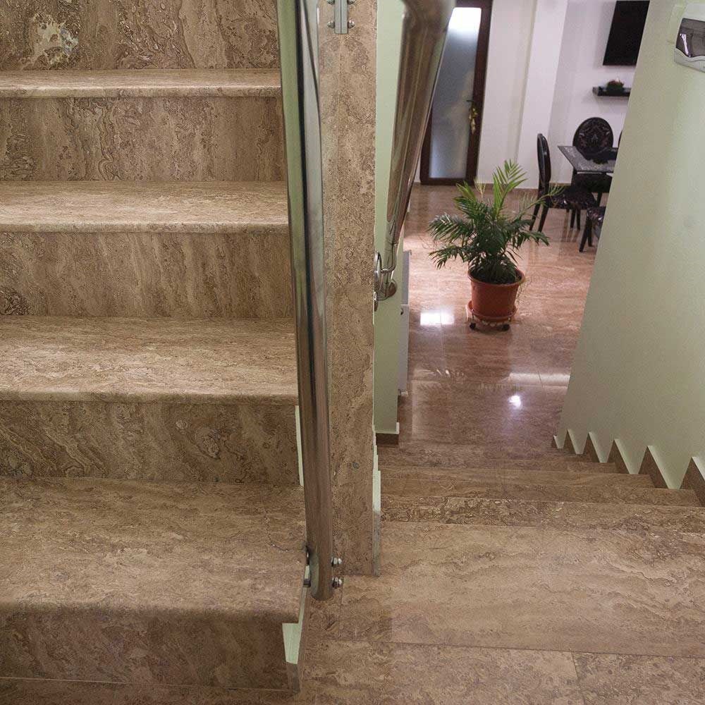 Les marches des escaliers intérieurs et extérieurs peuvent bénéficier d'une présence unique et distinguée, avec une teinte archaïque, en utilisant le travertin Latte poli. L'aspect particulier, doublé par la résistance {2) reconnue de ce matériau, satisfont même les goûts les plus sophistiqués en matière de design d'intérieur. Il est possible de fabriquer non seulement des marches et des contre-marches en travertin Latte poli, mais également des revêtements extérieurs et intérieurs, ainsi que confectionner des plans de travail pour la salle de bains et la cuisine , cheminées ou autres pièces spéciales sur commande. À la fin, tous ces produits auront des arêtes traitées conformément à vos souhaits, avec demi-bâton, biseautées, doublées ou découpées.