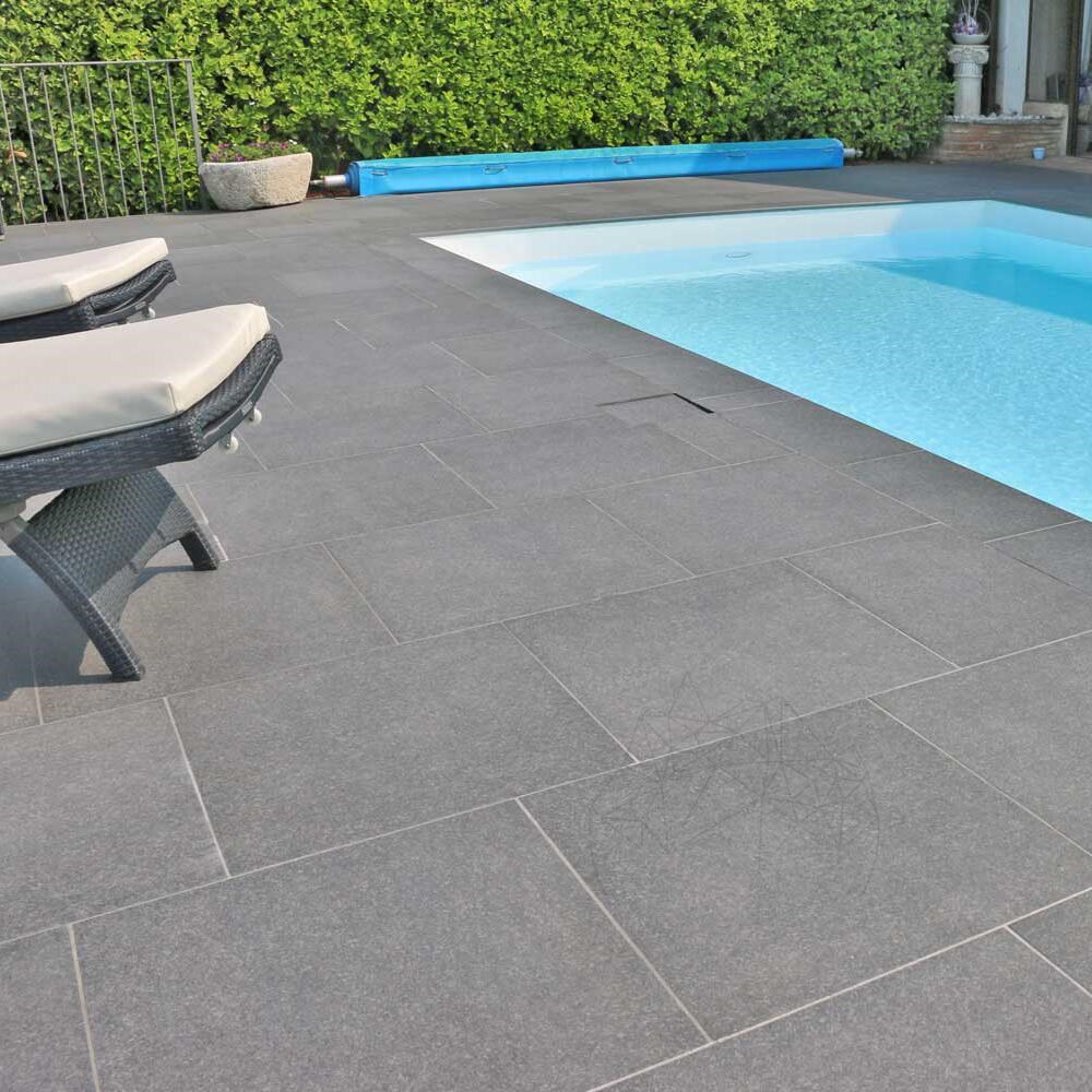 Colosseo Basalt Grau reproduit un Basalto dell'Etna exclusif d'Italie et est célèbre dans le monde entier.