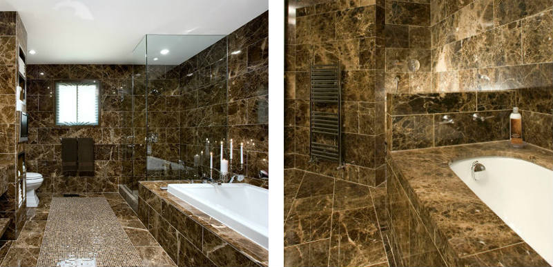 L'une des idées reçues concernant les sols en pierre naturelle est l'aspect glissant, qui les qualifie d'inadaptés aux salles de bain. Cependant, une telle idée fausse repose sur un fait : il est recommandé d'éviter d'installer de la pierre naturelle brillante (avec une finition polie) dans les salles de bains, à moins qu'elle ne soit traitée selon la description ci-dessous. Ainsi, une surface polie devient antidérapante grâce à des traitements spéciaux, tout en ajoutant de la personnalité et en rendant la salle de bain plus élégante.