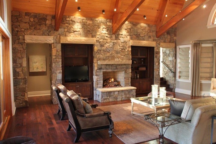 Comme vous le remarquerez sur les photos, vous êtes autorisé à utiliser n'importe quel style de mobilier ou de design d'intérieur, car il s'intègre parfaitement dans une pièce revêtue de dalles polygonales. Cette pierre naturelle s'intègre parfaitement aussi bien au bois (le plus souvent) qu'au métal. Il travaille naturellement avec des tissus fins, et aussi du cuir naturel ou synthétique. La dalle polygonale convient parfaitement à un espace encombré avec des meubles massifs, mais fonctionne également très bien dans un espace spacieux et un mobilier minimaliste.