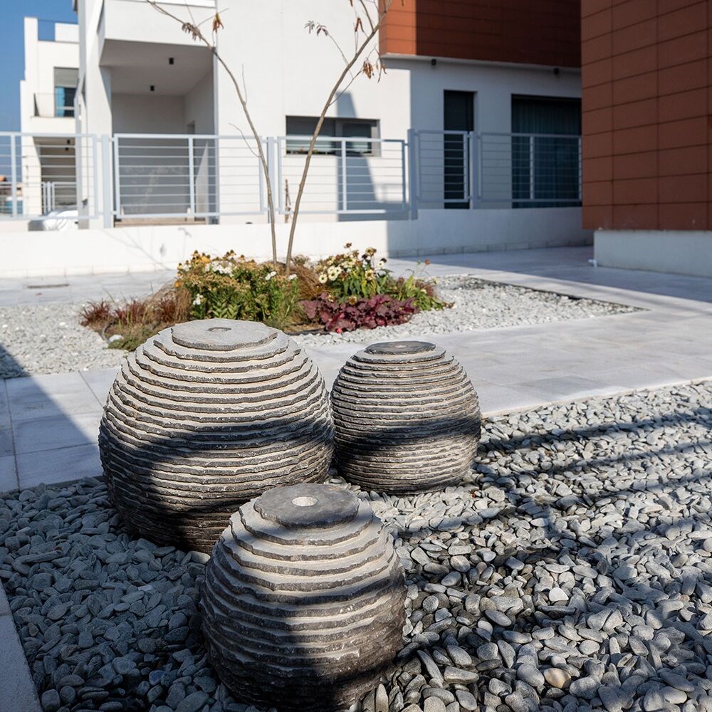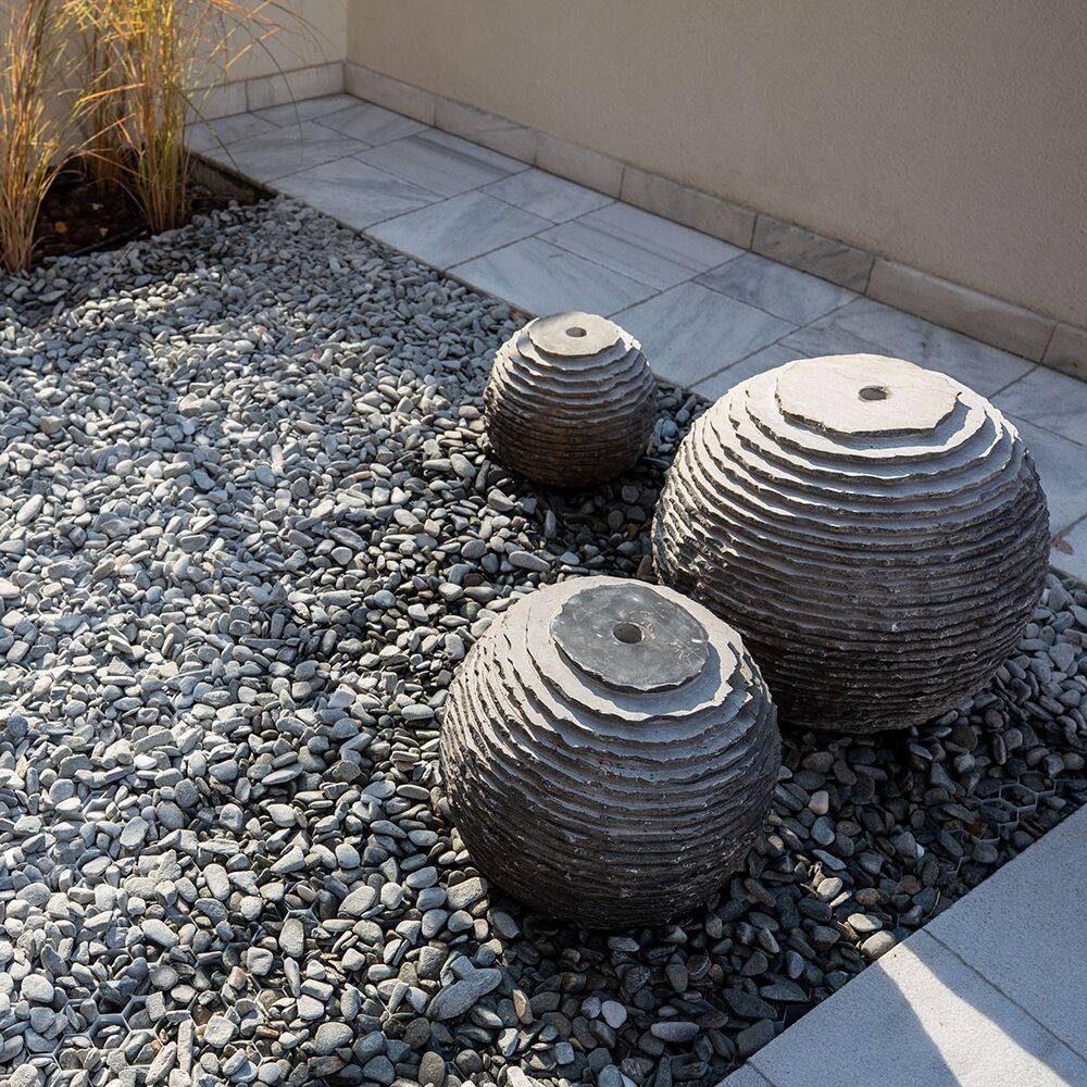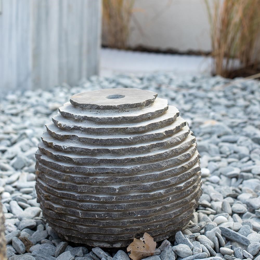 La géométrie nous entoure et la sphère est un élément fondamental de cette branche des mathématiques. D'un diamètre de 30 cm, la Sphère décorative Gris Anthracite est l'accessoire indispensable de votre jardin et confère une authenticité innée à tout projet d'aménagement paysager. Un accessoire de décoration fraisé en cercles concentriques denses censés refléter les latitudes d'une civilisation cachée. Ainsi, une telle sphère vise à révéler à votre imagination la perfection ronde des millénaires passés. Telle quelle, elle ressemble à une reine du monde mystérieux et magique des pierres des Trovants. Un lieu où le mouvement revêt des significations cachées et où le correspondant résonne avec la vibration millénaire de la pierre. Une pierre aussi étonnante permettra d'aménager la perfection des formes dans votre jardin !