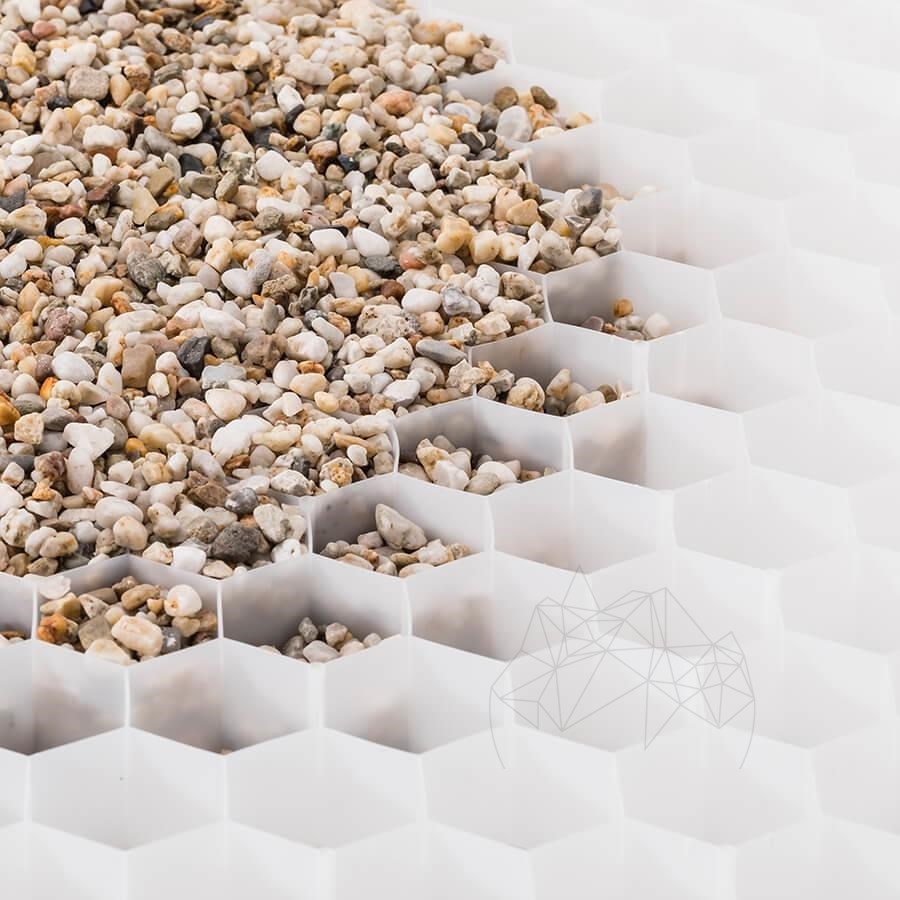 sa structure hexagonale en nid d’abeille en polypropylène de haute qualité et son support géotextile professionnel Typar, BERA Gravel Fix® Lite est conçu pour fournir une base stable et solide pour l’application de gravier sur les chemins, les parkings ou allées à faible trafic. Il offrira une surface stable et poreuse pour des projets résidentiels et urbains.