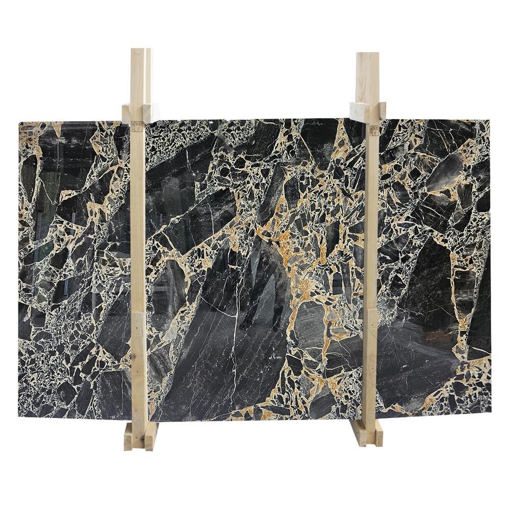 Parce qu'il allie la résistance naturelle du marbre à la beauté unique des nuances noir et or, offrant un matériau exceptionnel pour des projets de design raffinés.