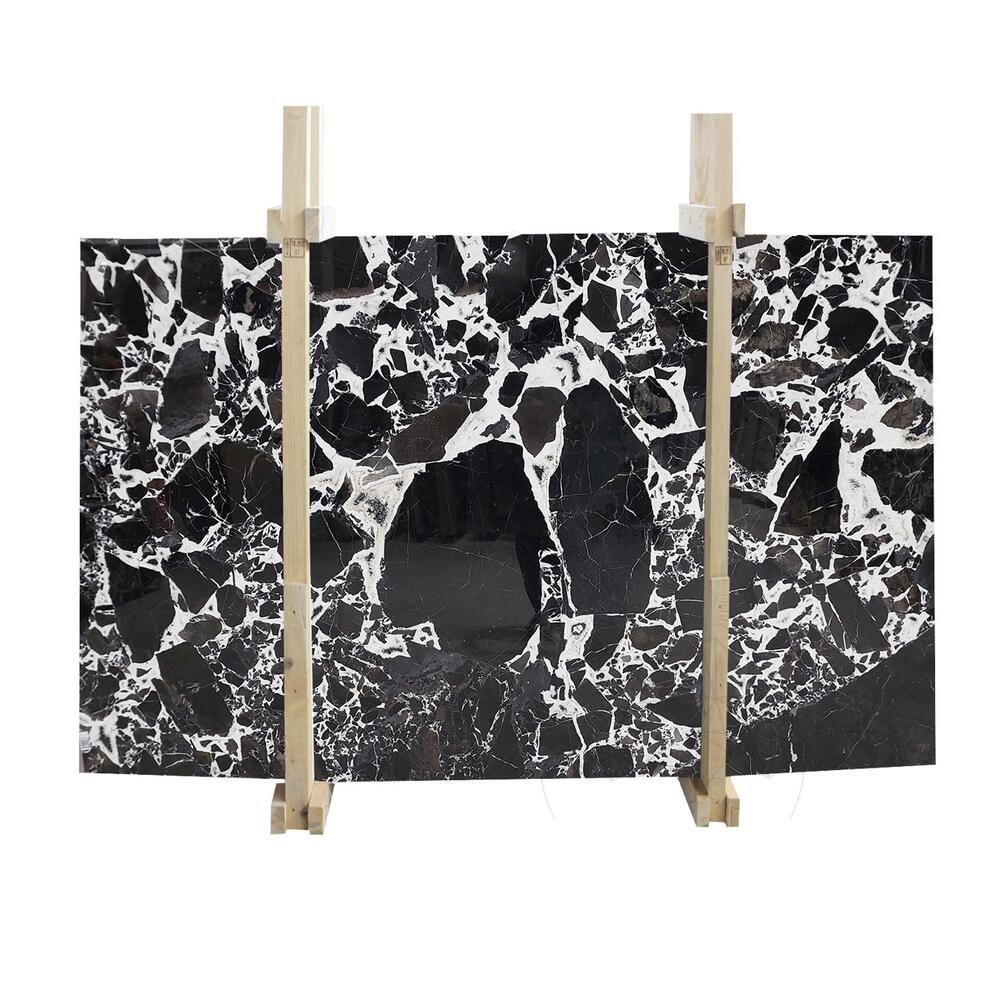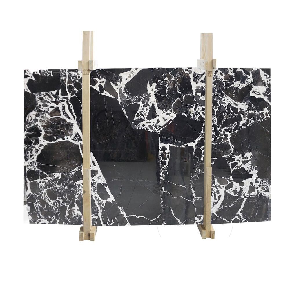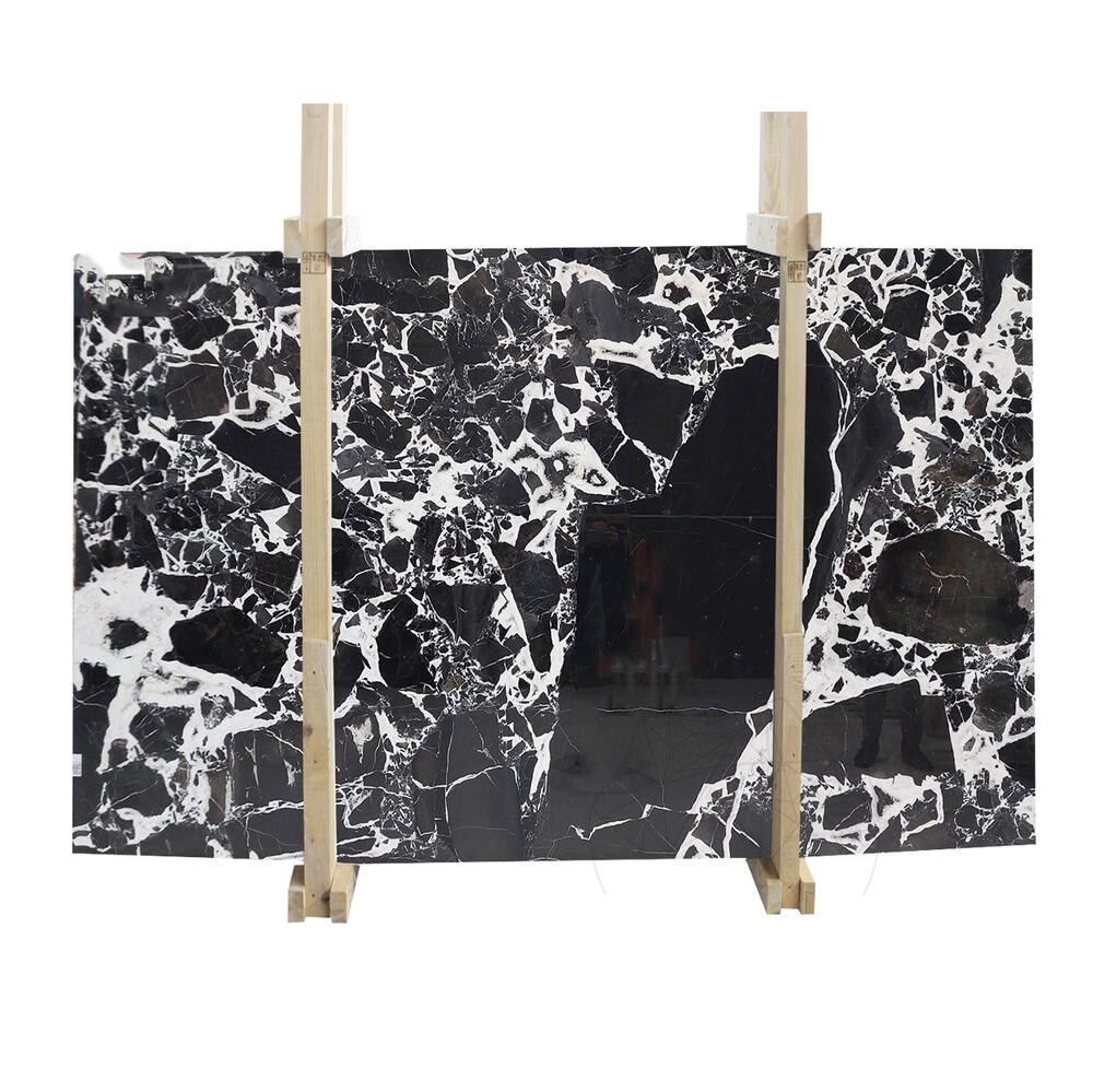 La dalle de marbre Grand Antique Polie se distingue par son fort contraste noir et blanc, avec des veinures blanches spectaculaires sur un fond noir profond. Ce marbre naturel d’exception incarne la noblesse, le luxe et l’audace, idéal pour les intérieurs raffinés et expressifs.