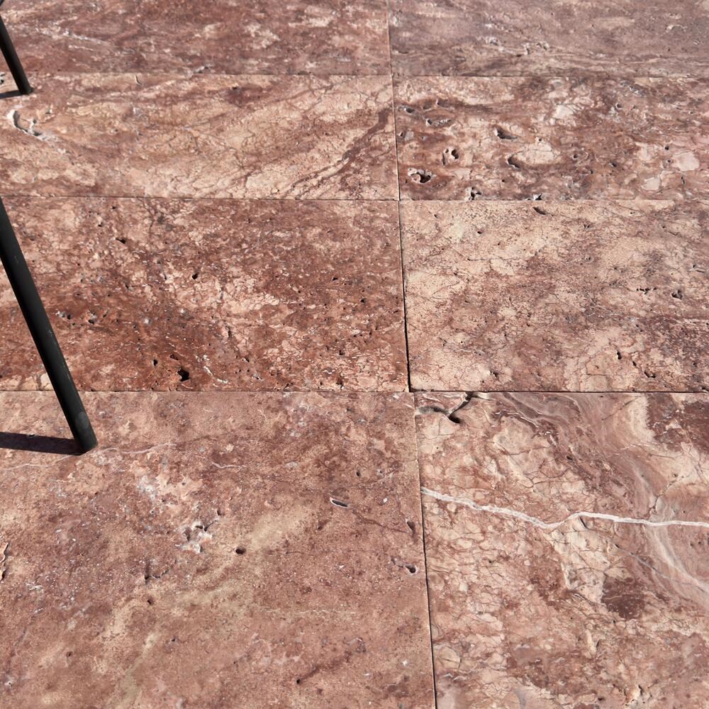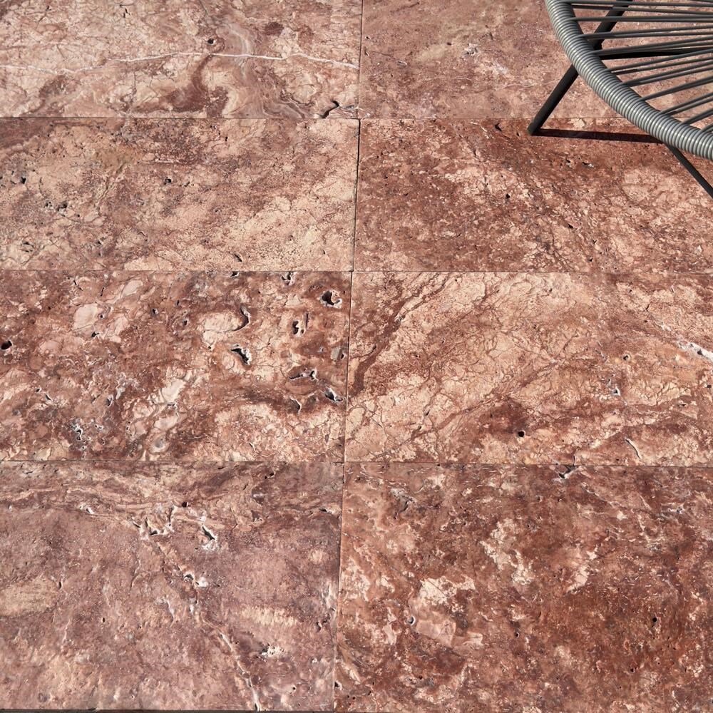 Les carreaux de travertin rouge Opium avec finition brossée sont parfaits pour le revêtement et le plancher des zones intérieures et extérieures, dans les projets de décoration publics et résidentiels.
