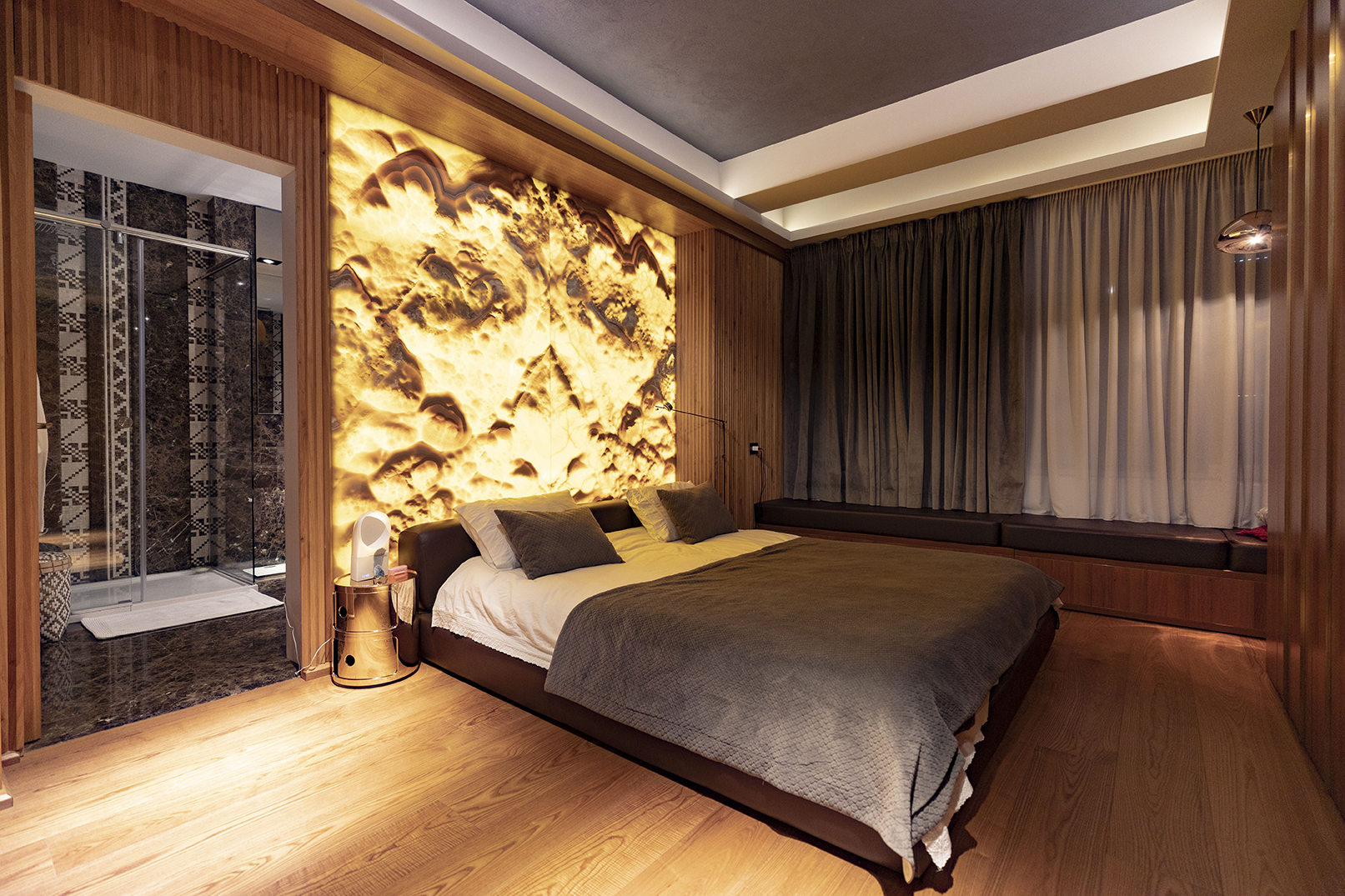 Onix is a material able to warm the ambience, with a distinct look when backlit. This is the star of your bedroom, because it is a perfect fit in a space for spending the night / rest. Besides, natural stone is always in trends, which means that your bedroom will always be updated and connected with originality.